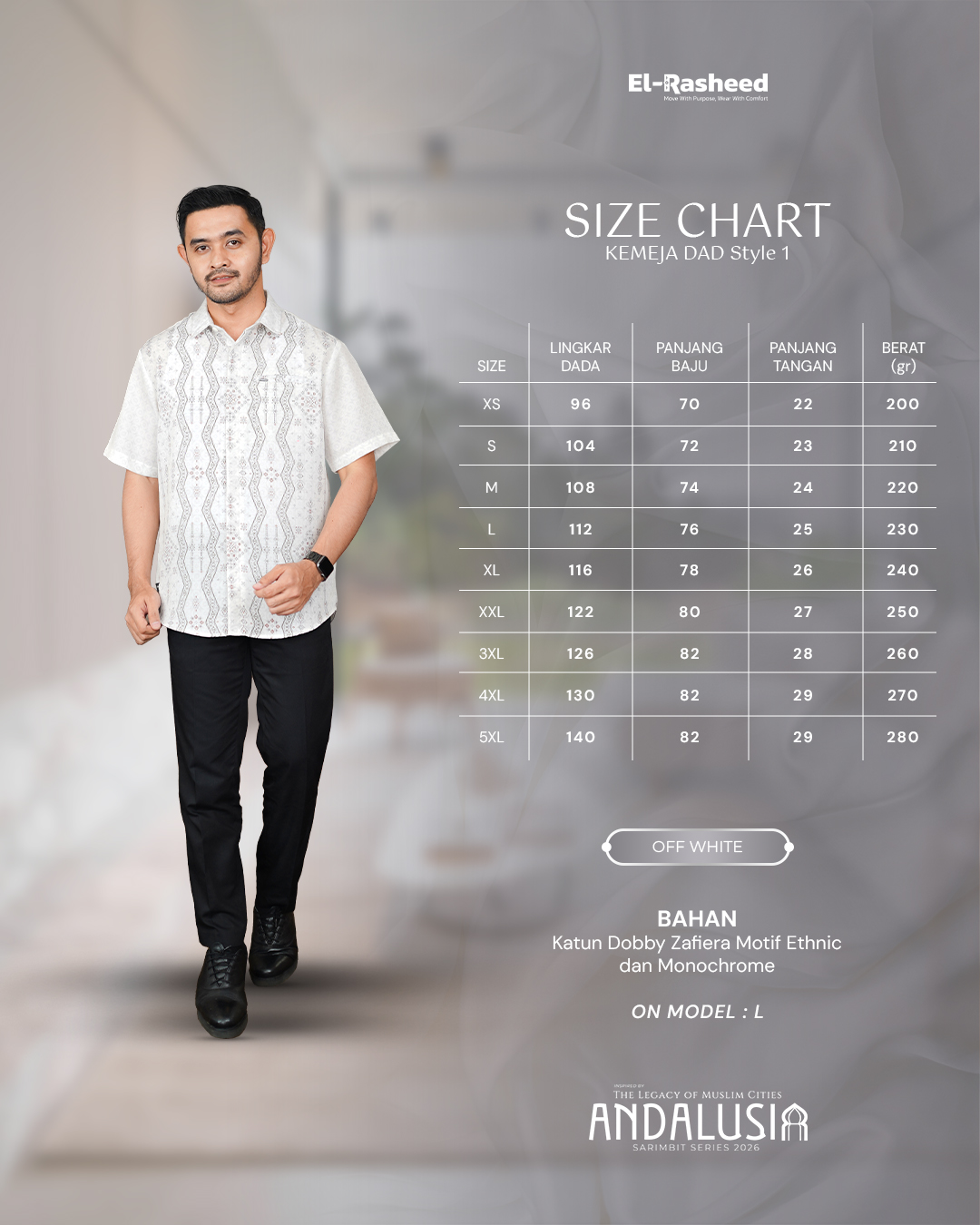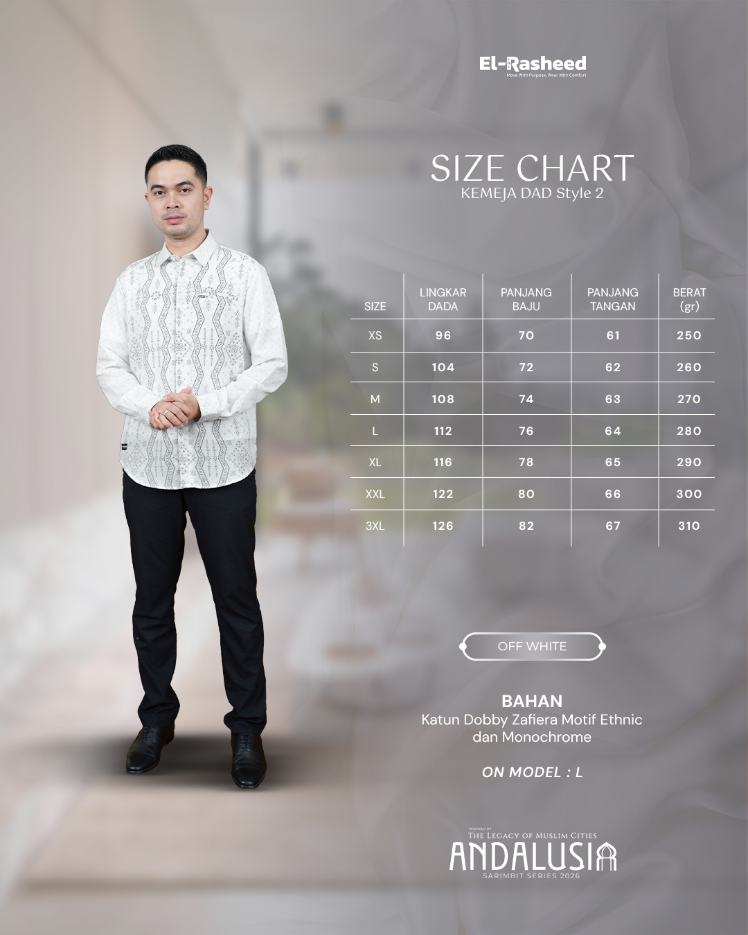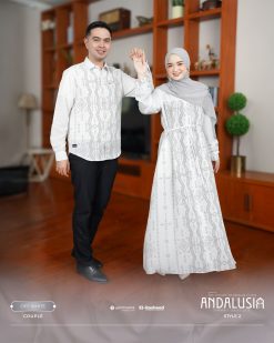 Andalusia Sarimbit Series 2026, hadir dengan pemilihan bahan yang Premium, menggunakan elemen khas Moorish, Arabesque, dan Kaligrafi Islam Eropa disetiap detail motifnya, menghasilkan motif yang unik dan warna yang elegan. Desainnya memberi kesan elegan, harmony, classy, dan mewah, cocok untuk acara santai maupun momen spesial.